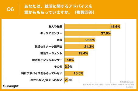 本編とは関係ないですが、就活のアドバイスは身近な関係からもらう学生が多いことに驚きました。